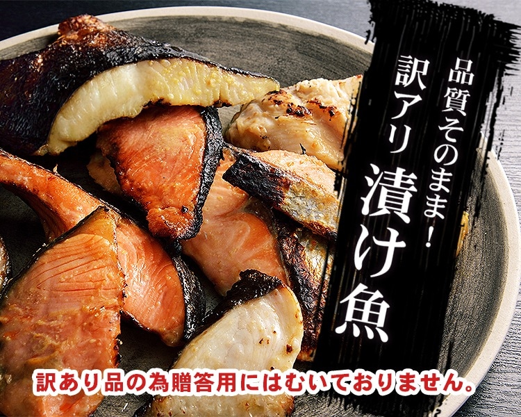 角上魚類で加工した漬け魚の中で製品にならない漬け魚(部位が尾、切身カットミス、不揃い、血合い、真空時の魚ヒレ等の混入)をお買い得価格にてご提案。もちろん味は一般販売品と変わりません。